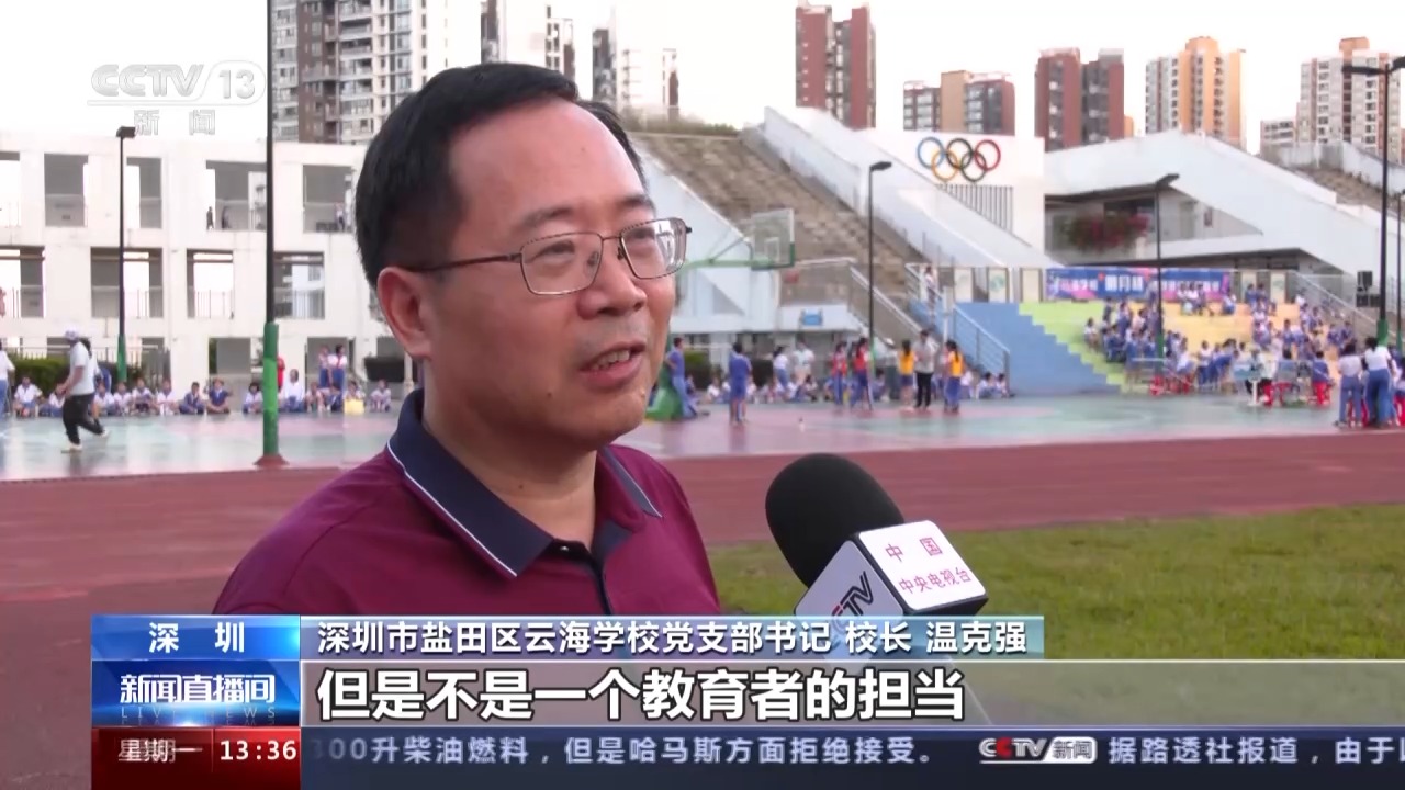 深圳市鹽田區(qū)云海學(xué)校黨支部書記、校長 溫克強(qiáng):怕出事情,怕?lián)?zé)任,就把學(xué)生課間圈養(yǎng),確實這個是省時省力,但是不是一個教育者的擔(dān)當(dāng),也不是一個學(xué)校的擔(dān)當(dāng)。應(yīng)該尊重教育規(guī)律,要為孩子們的健康著想。希望我們的孩子在這邊讀9年,他會科學(xué)地鍛煉,有這種鍛煉的好習(xí)慣,熱愛體育,熱愛生活,這就是我們追求的方向和育人目標(biāo)。