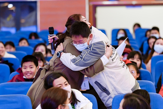 親子互動課上,吳松亞得到了兒子結(jié)實(shí)的擁抱。受訪者供圖