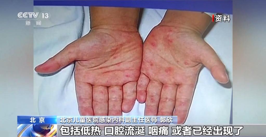 北京兒童醫(yī)院感染內(nèi)科副主任醫(yī)師 郭欣:通過一些蛛絲馬跡來早期發(fā)現(xiàn),可以去仔細(xì)觀察孩子的口腔、皮膚的黏膜,通常典型的癥狀就是累及手部、腳部,還有孩子的小屁屁上,可能會出現(xiàn)小紅點。在潛伏期3—5天之后,孩子可能早期會出現(xiàn)一些包括低熱、口腔流涎、咽痛,或者已經(jīng)出現(xiàn)了手足或者臀部的這種皮疹,這樣如果出現(xiàn)這樣的癥狀,家長就一定要注意孩子可能罹患了手足口病。