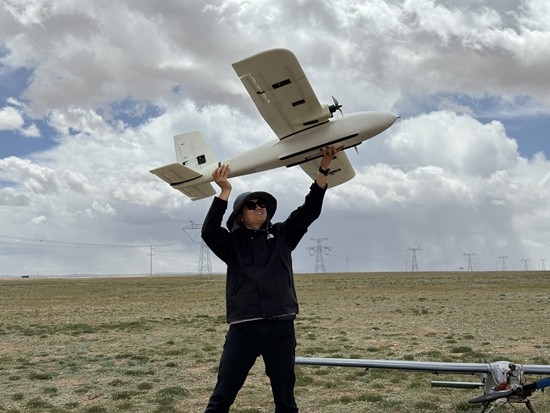 桂維振在可可西里放飛無人機。北京工業(yè)職業(yè)技術學院供圖