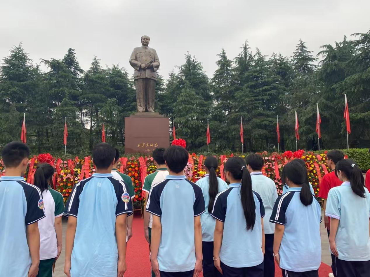 2024年4月24日,湖南省懷化市辰溪縣2000余名師生來到毛主席故鄉(xiāng)韶山開展“我的韶山行”紅色研學(xué),圖為學(xué)生代表向毛主席銅像敬獻(xiàn)花籃。