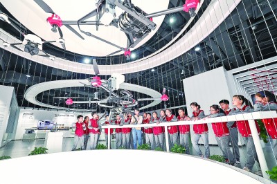 學(xué)生們?cè)谡憬『菔械虑蹇h地理信息科技館學(xué)習(xí)無(wú)人機(jī)地理測(cè)繪知識(shí)。新華社發(fā)