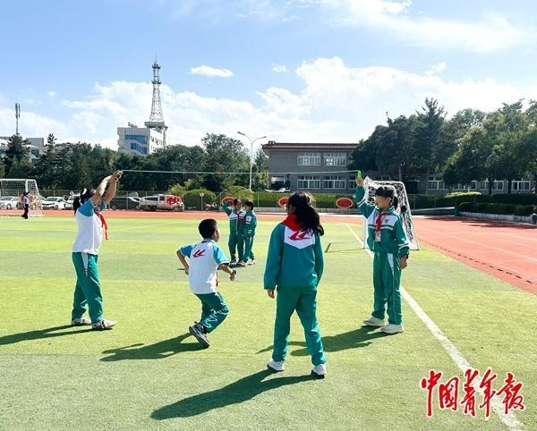 9月8日下午,記者來(lái)到固原市原州區(qū)第十一小學(xué)(以下簡(jiǎn)稱(chēng)“原州十一小”)。課間15分鐘,教學(xué)樓前的空地上,學(xué)生們跳繩、打沙包、跳方格,歡笑聲此起彼伏;30分鐘大課間時(shí)段,在學(xué)校老師陪伴下,56個(gè)班級(jí)2976名學(xué)生參加“迷你軍訓(xùn)”、武術(shù)、球類(lèi)運(yùn)動(dòng)、冰壺訓(xùn)練、自由運(yùn)動(dòng)等,響亮的口號(hào)聲在操場(chǎng)回蕩;體育課上,孩子們以班級(jí)為單位,踢足球、打羽毛球、打籃球,一張張笑臉上洋溢著蓬勃朝氣。