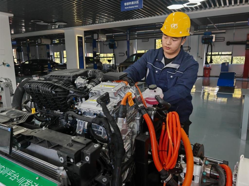 為支撐新能源汽車產(chǎn)業(yè)崛起,河南省全省高職院校開設(shè)相關(guān)專業(yè)點(diǎn)419個(gè),相關(guān)在校生22.14萬人。在河南機(jī)電職業(yè)學(xué)院與比亞迪共建的現(xiàn)場工程師學(xué)院,圍繞“現(xiàn)場工程師”培養(yǎng)開發(fā)了37門項(xiàng)目化課程。該校每年向鄭州航空港區(qū)比亞迪工廠輸送1000余名技能人才,不少學(xué)生迅速成長為產(chǎn)線骨干?!皩W(xué)校通過‘項(xiàng)目+人才’雙交付育人模式,極大地增強(qiáng)了人才培養(yǎng)與企業(yè)需求的匹配度。”比亞迪總裝車間主任如是說。