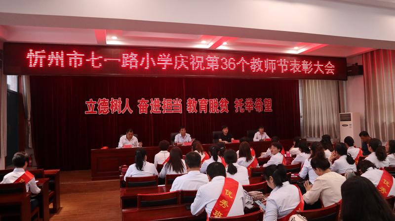 金風(fēng)送爽,涼霜驚秋。伴隨著時(shí)光款款的腳步,相攜著歲月累累的果實(shí),為傳承尊師重教的文明火種,增強(qiáng)教師的光榮感、責(zé)任感、使命感,培養(yǎng)學(xué)生尊師重教的良好品德,在第36個(gè)教師節(jié)即將來臨之際,9月9日下午,忻州市七一路小學(xué)舉行了“立德樹人奮進(jìn)擔(dān)當(dāng),教育脫貧托舉希望”第36個(gè)教師節(jié)表彰活動(dòng),會(huì)議由郭彥君副校長主持,全體教職工參加了表彰大會(huì)。