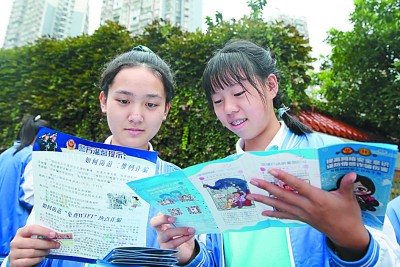 9月15日,四川省內江市東興初級中學學生正在閱讀網絡安全宣傳資料。蘭自濤攝/光明圖片