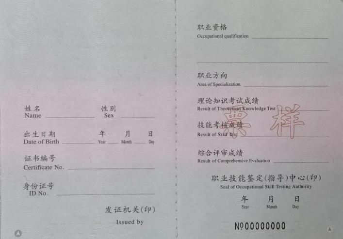 正規(guī)的技能人員職業(yè)資格證書樣式