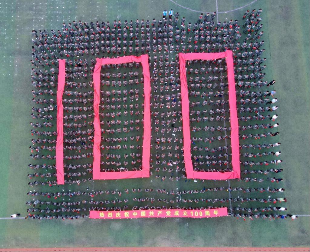 操場(chǎng)中央,由1000名2020級(jí)學(xué)生組成方隊(duì),呈現(xiàn)“100”字型,向黨致敬?;顒?dòng)全程莊嚴(yán)肅穆,又不失青春的朝氣蓬勃和奮進(jìn)的斗志昂揚(yáng),顯現(xiàn)出師生對(duì)中國(guó)共產(chǎn)黨百年華誕的崇敬與祝福。
