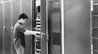 在東南亞電信(柬埔寨)有限公司建設的云數(shù)據(jù)中心里,工作人員正在調(diào)試設備。本報記者 張志文攝