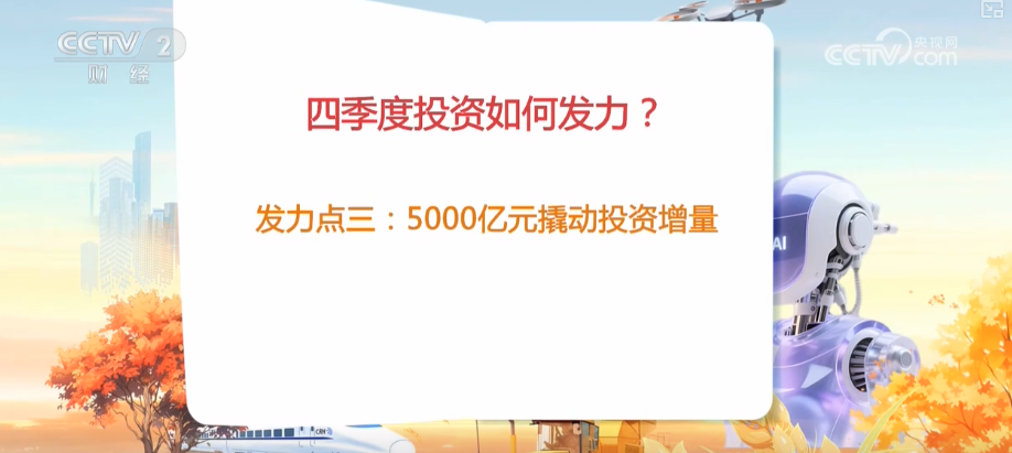 央視網(wǎng)消息:投資是拉動(dòng)經(jīng)濟(jì)增長(zhǎng)的“三駕馬車”之一。四季度,國(guó)內(nèi)投資發(fā)力的重點(diǎn)在哪里,專家進(jìn)行了權(quán)威解讀。