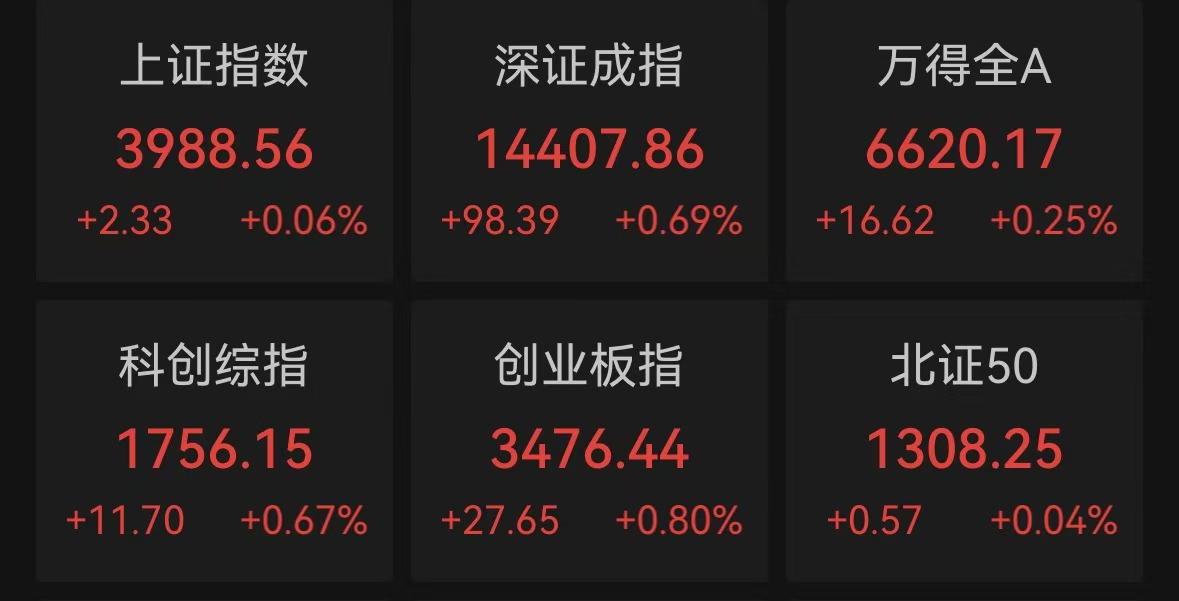 A股三大股指集體收紅