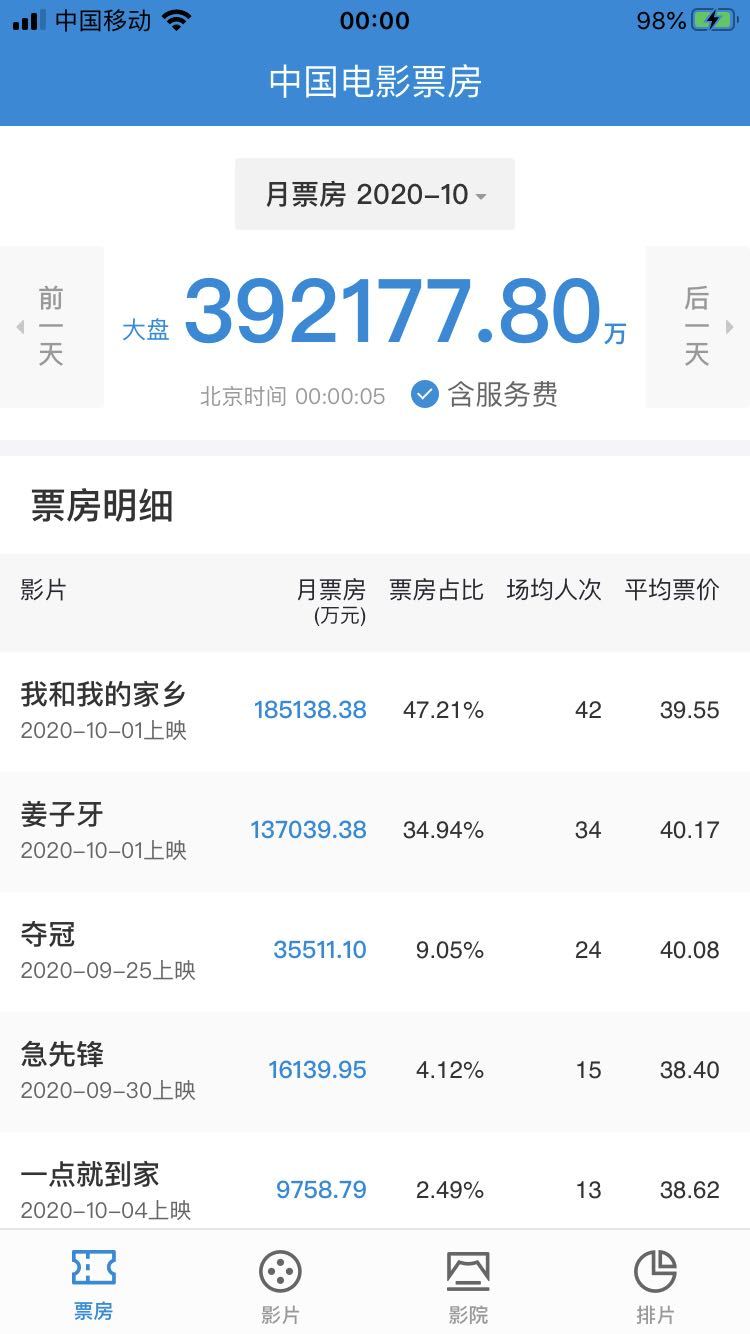 2020年國慶檔(10月1日-10月8日)落下帷幕,據(jù)國家電影專項資金辦公室“中國電影票房APP”數(shù)據(jù)顯示,截至10月8日24時,2020年國慶檔票房達39.2億元,取得中國影史國慶檔票房第二的成績。
