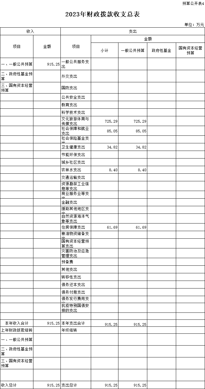 四、2023年財(cái)政撥款收支總表