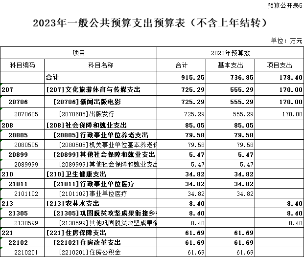 五、2023年一般公共預(yù)算支出預(yù)算表