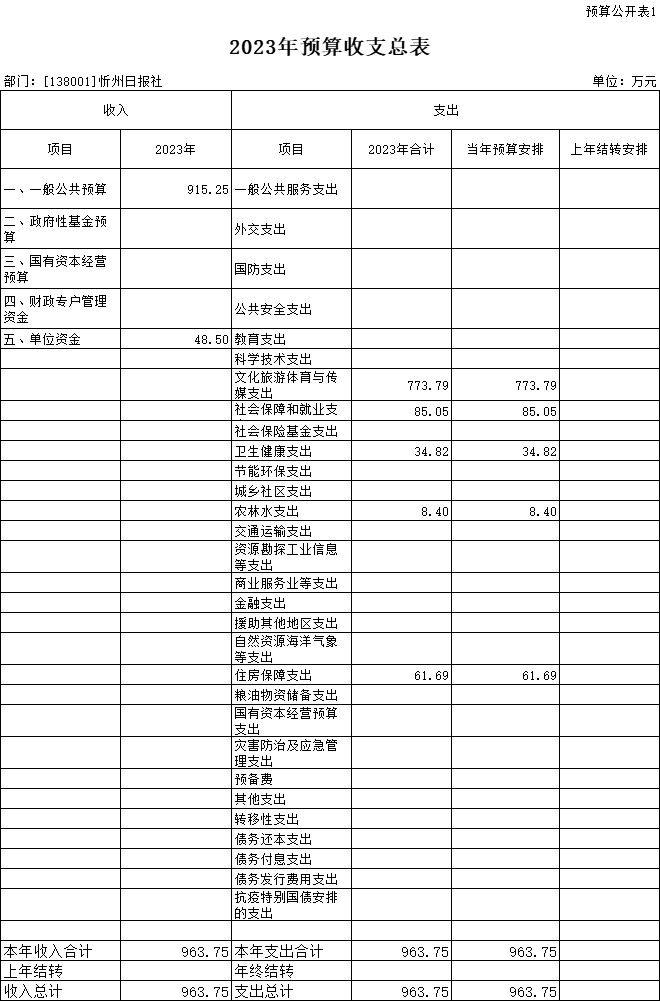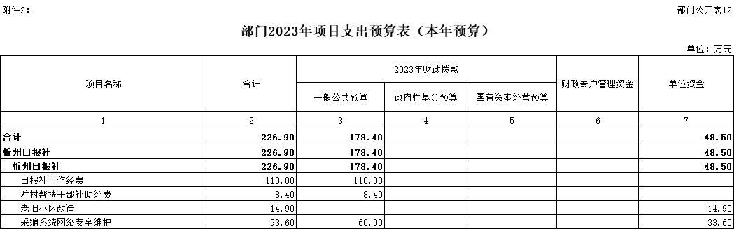 | 忻州日?qǐng)?bào)社2023年度部門預(yù)算 |