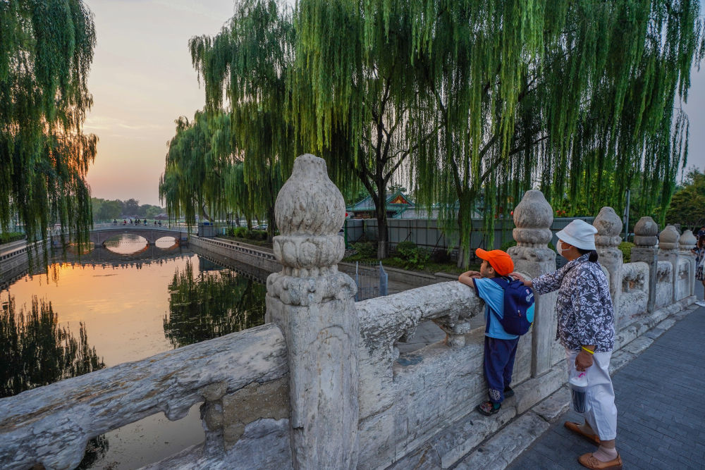 市民在京杭大運(yùn)河和北京中軸線交匯點(diǎn)的萬寧橋上眺望什剎海(2022年9月28日攝)。新華社記者 陳鐘昊 攝