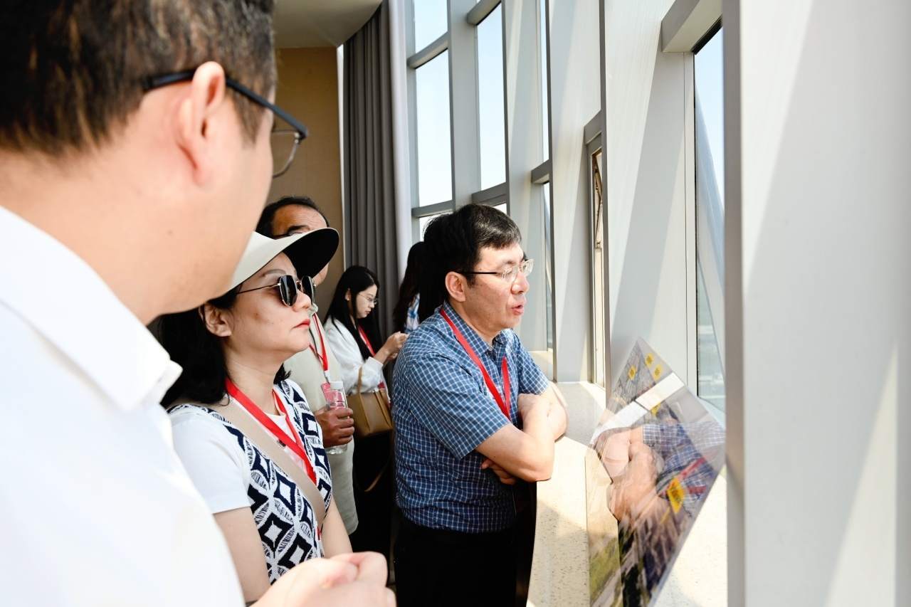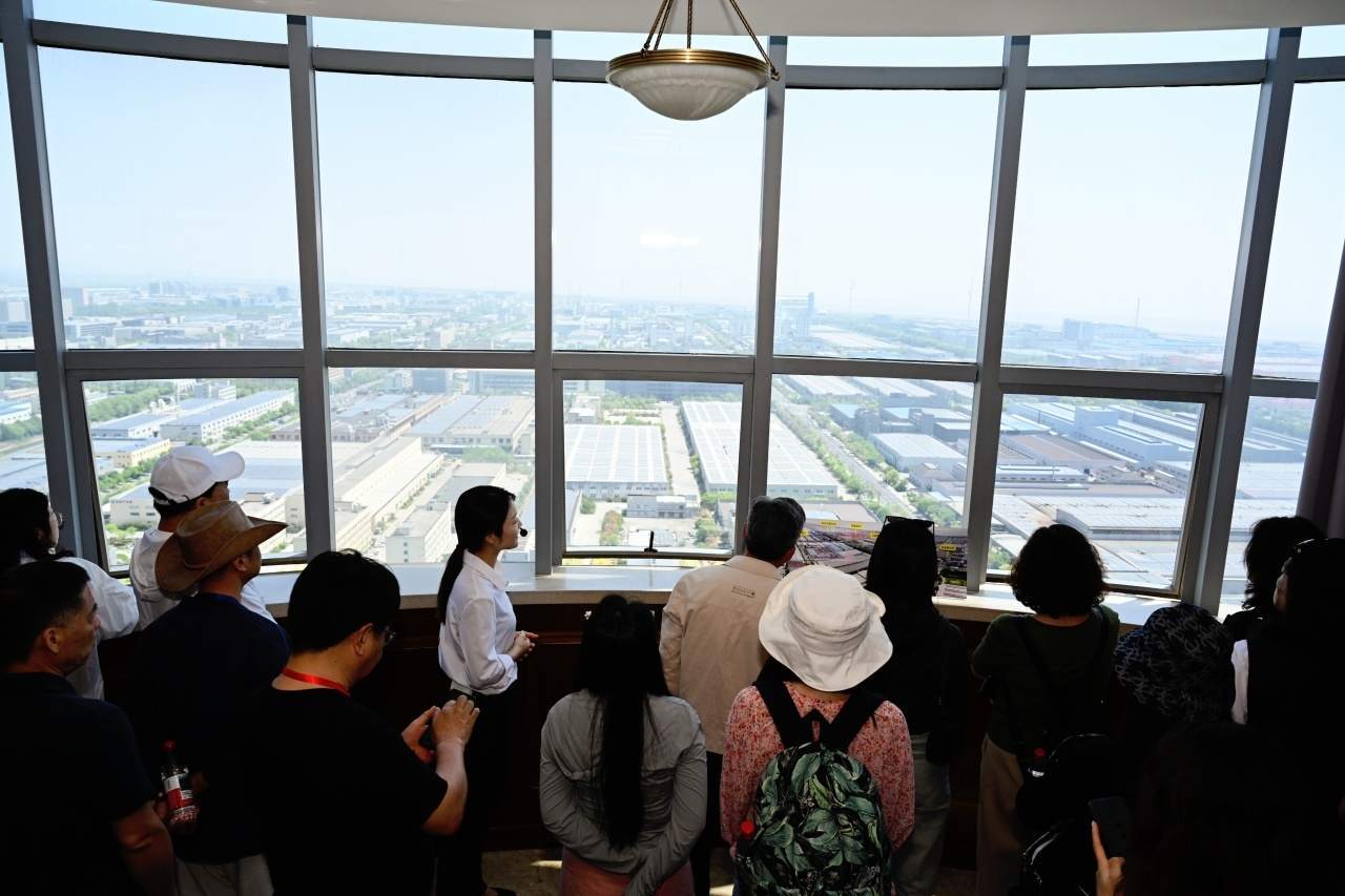通過(guò)城市綠色觀景臺(tái),采訪團(tuán)成員們得以在空中觀景平臺(tái)俯瞰尖山全景,光伏發(fā)電板在陽(yáng)光的照耀下熠熠生輝;不遠(yuǎn)處,風(fēng)力發(fā)電機(jī)的巨大葉片也在悠悠轉(zhuǎn)動(dòng)。這一光伏發(fā)電與風(fēng)力發(fā)電協(xié)同運(yùn)作的景象被毫無(wú)保留地盡收眼底。