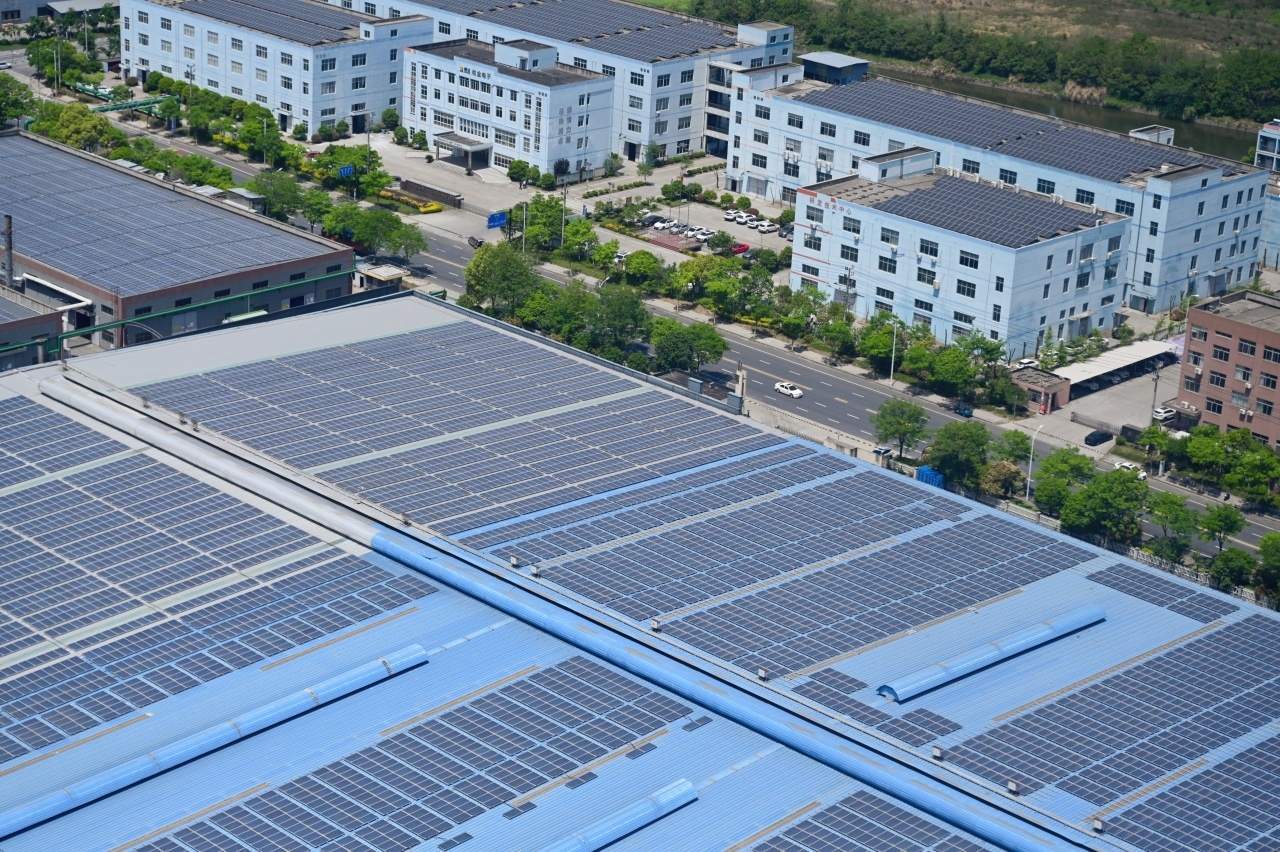 在尖山,企業(yè)屋頂安裝光伏已成為“標(biāo)配”。如今,已有 232 家尖山企業(yè)積極響應(yīng)號(hào)召,成功安裝光伏發(fā)電設(shè)施,數(shù)量占到了全部工業(yè)企業(yè)數(shù)量的74.1%,鋪設(shè)面積占區(qū)域屋頂總面積的比例更是突破70%,全年發(fā)電量超4.06億千瓦時(shí),在全國(guó)同類工業(yè)園區(qū)中遙遙領(lǐng)先。