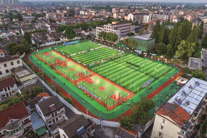 對于社區(qū)嵌入式服務(wù)綜合體所在的王店鎮(zhèn)全民健身中心,大家也都表現(xiàn)出極大的興趣。這是2020年王店鎮(zhèn)利用王店中學(xué)校區(qū)舊址打造的一個(gè)樞紐式運(yùn)動場所,足球場、籃球場、門球場、室內(nèi)健身房等多個(gè)室內(nèi)外運(yùn)動場所一應(yīng)俱全。更特別的是,它不僅是嘉興市首個(gè)鄉(xiāng)鎮(zhèn)全民健身中心,更是當(dāng)?shù)鼐拇蛟斓囊粋€(gè)集體育活動、技能培訓(xùn)和休閑活動于一體的文體中心,擁有齊全的健身設(shè)施和培訓(xùn)場地,能滿足周邊居民對休閑運(yùn)動和企業(yè)員工提升素質(zhì)的需求。