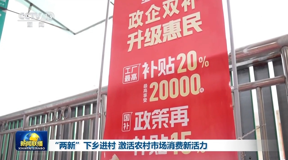 央視網消息(新聞聯(lián)播):“兩新”政策實施以來,各地通過擴大補貼范圍、優(yōu)化服務等措施,將實惠和便利送到鄉(xiāng)村,激發(fā)農村市場消費活力。 陜西西安今年在農村地區(qū)擴大“換新”補貼的品類范圍,將家電補貼范圍由8類擴大到12類,將微波爐、凈水器等家電納入補貼范圍,此外還增加了32類生活電器。四川北川明確了家裝家居補貼政策向“適老化改造”傾斜,對老人家庭給予最高30%的補貼。