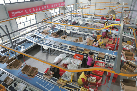11月14日,原平市同川鎮(zhèn)劉河底村同川梨果倉儲配送中心自動化選果車間內(nèi),工人們正在篩選、包裝產(chǎn)品。近年來,該市發(fā)揮“一村一品”地理優(yōu)勢,深耕梨果產(chǎn)業(yè)鏈,建設(shè)與現(xiàn)代農(nóng)業(yè)產(chǎn)業(yè)發(fā)展相適應(yīng)的農(nóng)產(chǎn)品冷鏈物流體系,助力當(dāng)?shù)剞r(nóng)產(chǎn)品對外銷售。