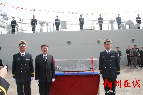 新入列命名的“五臺(tái)山艦”(閆堅(jiān)劍 攝) 本報(bào)訊 3月7日,海軍“五臺(tái)山”艦入列命名授旗儀式在東海艦隊(duì)某軍港舉行。市委常委、五臺(tái)山風(fēng)景名勝區(qū)管委會(huì)籌委會(huì)主任、臨時(shí)黨委書記范波濤出席儀式并講話,五臺(tái)縣政府和市雙擁辦領(lǐng)導(dǎo)參加儀式。