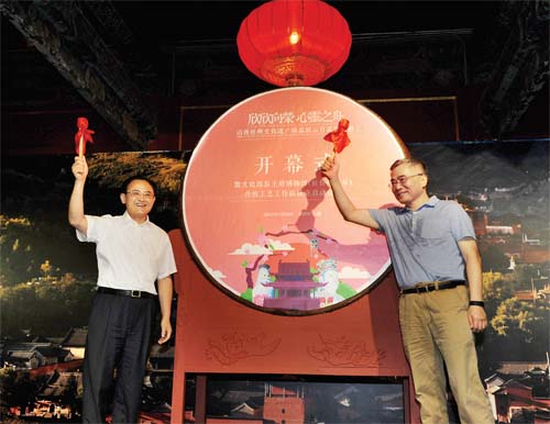 本報訊(記者 任逢春)7月22日,經(jīng)過扎實細致的準備,由文化部恭王府博物館和忻州市委、市政府共同主辦的“欣欣向榮,心靈之舟”山西忻州文化遺產(chǎn)精品展示月系列活動正式亮相首都。同日,文化部恭王府博物館(駐忻州靜樂)傳統(tǒng)工藝工作站正式成立,文化部副部長項兆倫和市委書記李俊明一同擊鼓啟幕,市委常委、常務副市長趙志堅主持開幕式。文化部非遺司司長陳通,文化部恭王府博物館館長孫旭光,省委宣傳部常務副部長李福明,省文化廳副廳長趙銀邦,市委常委、宣傳部長陳義青,市委常委、秘書長崔建新,市人大常委會副主任、靜樂縣委書記李德新,副市長王月娥,以及文化部恭王府博物館、文化部離退休人員服務中心、省委宣傳部、省文化廳和我市的有關領導同志出席開幕活動。中央、省、市媒體記者和各地游人一同見證開幕。