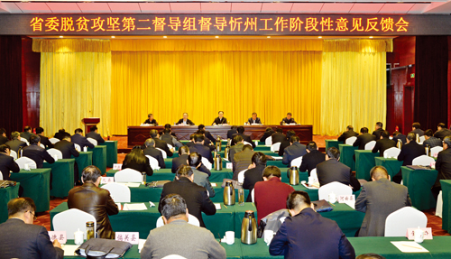 本報訊(記者 任逢春)11月14日,由省科協(xié)巡視員王德貴任組長的省委脫貧攻堅第二督導(dǎo)組,向我市反饋督導(dǎo)脫貧攻堅工作階段性意見。市委書記、市脫貧攻堅領(lǐng)導(dǎo)組第一組長李俊明作表態(tài)發(fā)言,市委副書記、市長、市脫貧攻堅領(lǐng)導(dǎo)組組長鄭連生講話,市委副書記王珍主持會議。市脫貧攻堅領(lǐng)導(dǎo)組副組長及成員,各縣(市、區(qū))黨政主要負(fù)責(zé)人,扶貧辦主任,五臺山風(fēng)景區(qū)負(fù)責(zé)人,市扶貧領(lǐng)域監(jiān)督檢查組組長、副組長,市扶貧辦班子成員參加會議。省委脫貧攻堅第二督導(dǎo)組自今年6月中旬進(jìn)駐忻州市以來,分3個階段抽取檢查了11個國定貧困縣、3個國定貧困縣、3個深度貧困縣的資料,在28個鄉(xiāng)鎮(zhèn)的35個貧困村召開交流座談會,對2016年度國家考核問題整改情況、特色產(chǎn)業(yè)扶貧、干部駐村幫扶、扶貧資金使用績效和落實省委、省政府聚集深度貧困的各項措施進(jìn)行了督導(dǎo)抽查。