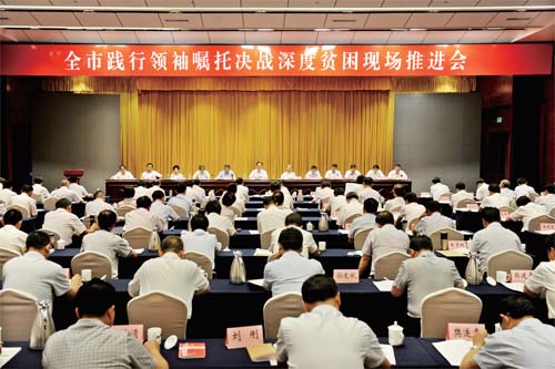 6月28日至30日,我市召開踐行領(lǐng)袖囑托決戰(zhàn)深度貧困現(xiàn)場(chǎng)推進(jìn)會(huì)。圖為大會(huì)會(huì)場(chǎng)。本報(bào)記者 劉紀(jì)森 攝