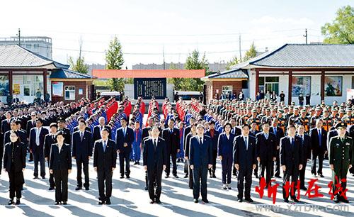 忻州市革命烈士陵園內(nèi),翠柏列陣,巍然聳立的紀念碑上“革命烈士永垂不朽”八個大字蒼勁有力。廣場上,部隊官兵、武警官兵、公安干警、應急民兵、學校師生、機關(guān)干部、社會團體和志愿者代表等社會各界人士整齊列隊,靜靜肅立。市委、市人大、市政府、市政協(xié)、忻州軍分區(qū),忻府區(qū)委、區(qū)人大、區(qū)政府、區(qū)政協(xié),人民團體和各界群眾敬獻的花籃依次擺放在紀念碑基座前廣場上。