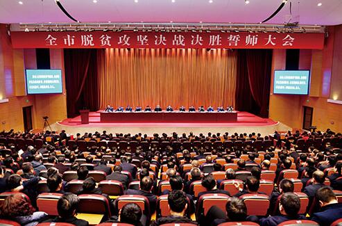 會議強調,2019 年是我市全面建成小康社會的關鍵之年,是脫貧攻堅決戰(zhàn)決勝之年,我市將實現(xiàn)全市整體性脫貧。2020 年,我市將持續(xù)鞏固脫貧成果,全面建成小康社會,踏上社會主義現(xiàn)代化建設的新征程。當前我市正處于打贏脫貧攻堅戰(zhàn)和實施鄉(xiāng)村振興兩大歷史性任務的交匯期,要充分認識全面脫貧與鄉(xiāng)村振興同步推進的艱巨性,抓好脫貧攻堅和鄉(xiāng)村振興銜接的過渡期;面對全面脫貧、全面小康的雙重任務,要更加明確“三農”工作在全市大局工作中的優(yōu)先位置;更加明確脫貧攻堅是鄉(xiāng)村振興的優(yōu)先任務。就是要在2020 年前,始終堅持脫貧攻堅統(tǒng)攬全局,將市委工作重心從精準脫貧方略向鄉(xiāng)村振興戰(zhàn)略逐步轉變;將脫貧攻堅工作重心由集中攻堅摘帽向摘帽鞏固并重轉變;將消滅絕對貧困向消除相對貧困逐步轉變。要充分運用好“團結戰(zhàn)斗出活”這個抓手,打好5 個計劃摘帽縣全面脫貧、如期摘帽這場硬仗;打好6 個脫貧摘帽縣持續(xù)鞏固、穩(wěn)步提升這場硬仗;打好4個非貧困縣(市、區(qū))完成減貧任務、實現(xiàn)全面脫貧這場硬仗。同時還要打好整村搬遷縣縣清零、整溝治理縣縣破零、深度縣“一縣一策”落地見效等多場攻堅戰(zhàn)。脫貧攻堅任務依舊繁重,形勢不容樂觀。我們要不驕不躁,再接再厲,守底線、再出發(fā)、攀高峰。