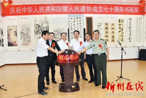 省人大常委會(huì)副主任、市委書記李俊明,省政協(xié)副主席席小軍,市人大常委會(huì)主任王珍,市政協(xié)主席劉鋼柱,市委常委、宣傳部長陳義青,市委常委、秘書長崔建新,忻州軍分區(qū)司令員李志強(qiáng),忻州師范學(xué)院院長張虎芳,副市長安書田,市政協(xié)副主席王慶榮、高志偉、黃登宇、吳培英,市人大常委會(huì)秘書長張?zhí)m軍,市政府秘書長郭寶厚,市政協(xié)秘書長王志剛,已退休的市政協(xié)老領(lǐng)導(dǎo)范懷成、張明成、楊學(xué)書、王志勇等,太原、陽泉、晉中市政協(xié)領(lǐng)導(dǎo)及著名書畫家代表出席開展儀式。忻州籍著名軍旅書畫家郭明高、劉傳光、張全美,國家一級美術(shù)師、中國美術(shù)家協(xié)會(huì)會(huì)員、廣西桂林的龍山農(nóng)先生等應(yīng)邀出席了開展儀式。劉鋼柱宣布書畫展開展,李俊明、席小軍、郭明高、王珍、劉鋼柱、李志強(qiáng)一起觸動(dòng)啟動(dòng)球。王志剛主持開展儀式,高志偉致辭。