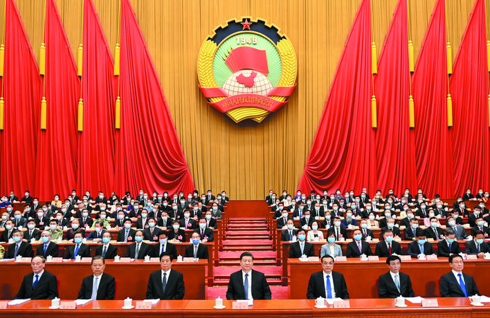 5月21日,中國人民政治協(xié)商會議第十三屆全國委員會第三次會議在北京人民大會堂開幕。這是習近平、李克強、栗戰(zhàn)書、王滬寧、趙樂際、韓正、王岐山在主席臺就座。 新華社記者 李學仁 攝