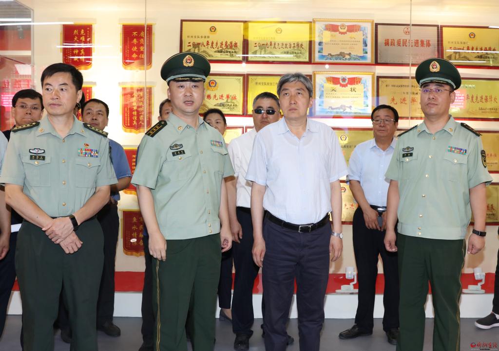 在武警忻州支隊,朱曉東參觀支隊史展覽館,詳細(xì)了解支隊歷史沿革和發(fā)展情況。他指出,武警支隊是一支作風(fēng)優(yōu)良、能吃苦能戰(zhàn)斗能奉獻(xiàn)的隊伍,感謝大家在聚焦備戰(zhàn)打仗、深化拓展軍事斗爭準(zhǔn)備的同時,積極參與和支持忻州經(jīng)濟(jì)社會發(fā)展,特別是在防火滅火、應(yīng)急救援、搶險救災(zāi)中,官兵們第一時間響應(yīng),不畏艱險、沖鋒在前,全力幫助處置險情、整治環(huán)境,用實際行動展現(xiàn)了人民子弟兵的本色擔(dān)當(dāng)。希望廣大官兵繼續(xù)加強(qiáng)訓(xùn)練,時刻準(zhǔn)備發(fā)揮職能,在保障全市安全穩(wěn)定方面作出更大貢獻(xiàn),在新時代新征程上再立新功。忻州將堅持以習(xí)近平新時代中國特色社會主義思想為指導(dǎo),堅定不移支持國防和軍隊現(xiàn)代化建設(shè),扎實推進(jìn)軍民融合發(fā)展,堅定不移做好擁軍優(yōu)屬工作,不斷完善退役軍人服務(wù)保障體系,共同譜寫軍政軍民團(tuán)結(jié)新篇章。