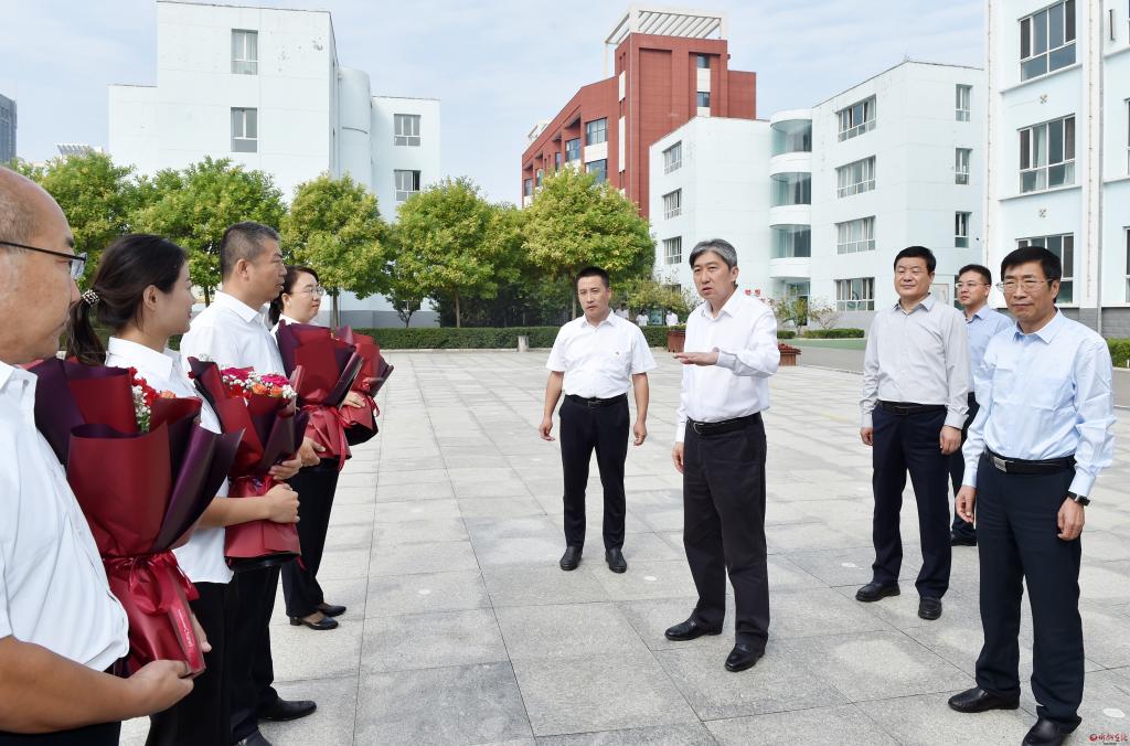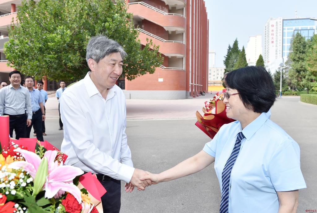 在第39個(gè)教師節(jié)到來(lái)之際,9月7日,市委書(shū)記朱曉東來(lái)到忻州市第一中學(xué)、忻州市第五中學(xué)和忻州市七一路小學(xué),看望慰問(wèn)一線(xiàn)教師,代表市委、市政府向全市廣大教師和教育工作者致以節(jié)日祝賀和誠(chéng)摯問(wèn)候。他強(qiáng)調(diào),教育興則國(guó)家興,教育強(qiáng)則國(guó)家強(qiáng)。全市上下要深刻領(lǐng)會(huì)習(xí)近平總書(shū)記在中共中央政治局第五次集體學(xué)習(xí)時(shí)關(guān)于建設(shè)教育強(qiáng)國(guó)的重要講話(huà)精神,全面貫徹黨的教育方針,落實(shí)立德樹(shù)人根本任務(wù),以為黨育人、為國(guó)育才為根本目標(biāo),大力培養(yǎng)擔(dān)當(dāng)民族復(fù)興大任的時(shí)代新人。市委常委、秘書(shū)長(zhǎng)溫建軍及市直相關(guān)部門(mén)負(fù)責(zé)同志參加。