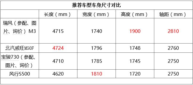 推薦車(chē)型車(chē)身尺寸對(duì)比