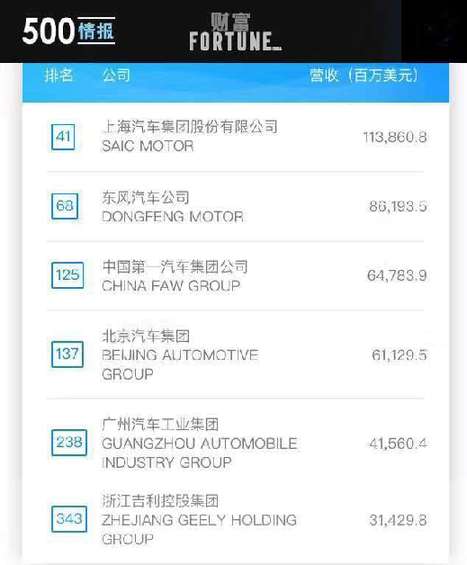 六家中國車企入選《財富》世界500強