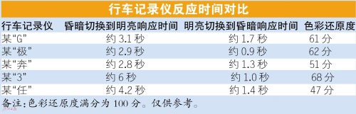 此次測試,車天下君準(zhǔn)備一個“黑盒子”,里面放置一個屏幕常亮的智能手機(jī)。在“黑盒子”外面,放置另外一個屏幕常亮的智能手機(jī)。切換時間控制在0.3秒之內(nèi),分為“明到暗”和“暗到明”兩個環(huán)節(jié),記錄行車記錄儀場景切換時的響應(yīng)時間。由測試結(jié)果一覽表可以看到,參與測試5個型號的行車記錄儀的響應(yīng)時間都不盡相同:短則1秒,長則6秒。車天下君歸納如下,質(zhì)量合格的行車記錄儀從昏暗切換到明亮環(huán)境的響應(yīng)時間應(yīng)在3~4秒之間,從明亮切換到昏暗環(huán)境當(dāng)中的響應(yīng)時間應(yīng)該在1~2秒之內(nèi)。