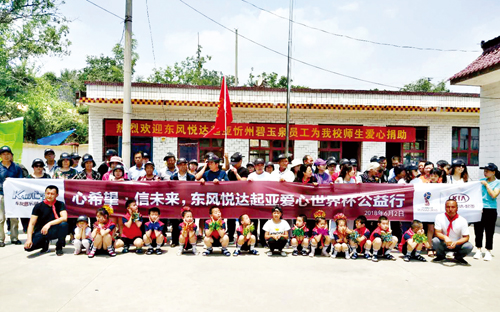 2018年6月2日“心希望信未來”東風悅達起亞世界杯公益行活動如期成功舉行。本次活動由東風悅達起亞廠家冠名支持,由忻州碧玉泉公司員工、部分保有客戶及家屬、意向客戶及媒體工作人員共60多人和代縣兩界溝小學全體師生共同參與。