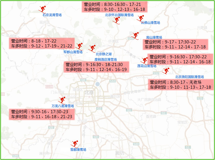 隨著冬奧會臨近,冰雪運動也在逐年升溫。北京周邊的南山、軍都山、漁陽等滑雪場不管在周末假期還是冬季的其他假期都會吸引大量愛好者?;┱叨鄶?shù)會選擇駕車前往,滑雪場周邊道路車流量較大,特別是近城區(qū)的幾個滑雪場熱度較高,9時至10時、12至14時、16至18時三個時段,周邊道路的車輛最多,交通壓力最大。