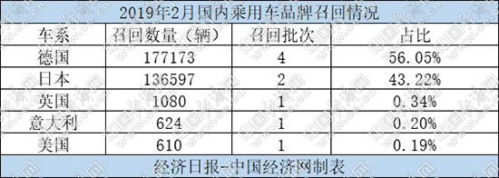 根據(jù)國家市場監(jiān)督管理總局缺陷產(chǎn)品管理中心3月份發(fā)布的召回公告,經(jīng)濟(jì)日報-中國經(jīng)濟(jì)網(wǎng)汽車頻道經(jīng)過匯總、統(tǒng)計,整理出“2019年3月國內(nèi)乘用車召回榜單”。3月,國內(nèi)乘用車市場共有9個品牌累計發(fā)布9起召回公告,共計召回汽車316084輛,同比下降12.39%,環(huán)比增長156.02%。