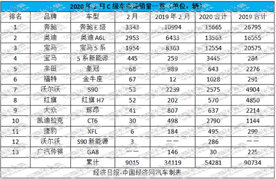 2月,幾乎全部國產C級車的銷量都出現(xiàn)暴跌,有的甚至沒有出現(xiàn)在行業(yè)的銷量統(tǒng)計表上。據統(tǒng)計,共有來自10個品牌的12款車型公布了銷量數(shù)據:2月,國產C級車的累計銷量為9015輛,環(huán)比下滑80.08%,與去年同期相比下降73.58%;今年前2個月的累計銷量為54281輛,同比下滑40.18%。