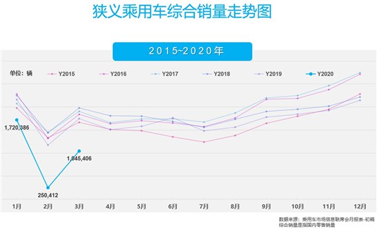 近日,乘用車市場信息聯(lián)席會發(fā)布數據顯示:1季度,受春節(jié)假期大幅提前及疫情疊加沖擊,國內狹義乘用車累計銷量為3014399輛,同比跌幅40.8%;但國內車市正積極走出疫情“陰霾”,3月呈現(xiàn)谷底“V”型反彈走勢,共售出1045406輛,環(huán)比猛增317.5%,同比下滑40.4%,已恢復至接近同期6成水平,體現(xiàn)出疫情后時代剛需的較快恢復。