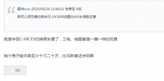 此外,雷克薩斯上月推出的首款純電車(chē)型UX300e,新車(chē)售價(jià)超出30萬(wàn)元,根據(jù)補(bǔ)貼新政,今年7月22日后將無(wú)法享受新能源補(bǔ)貼。同時(shí),從論壇上消費(fèi)者的反應(yīng)來(lái)看,對(duì)其似乎也不:太看好,不禁讓人對(duì)雷克薩斯在華電動(dòng)車(chē)“頭炮”能否打響產(chǎn)生擔(dān)憂。