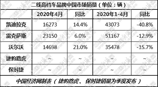 得益于抗疫形勢(shì)持續(xù)向好,復(fù)工復(fù)產(chǎn)加快推進(jìn),4月二線高檔車(chē)市場(chǎng)呈現(xiàn)加速回升之勢(shì)。其中,按照月度公布銷量的三大品牌,4月均實(shí)現(xiàn)同比正增長(zhǎng),凱迪拉克、沃爾沃增幅更是達(dá)到兩位數(shù),而雷克薩斯也有著6%的上升,為二季度發(fā)展奠定良好開(kāi)局。