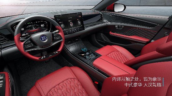 漢整體基于Dragon Face設(shè)計(jì)語言打造,外觀造型采用雙龍并型·性能美學(xué)設(shè)計(jì)語言,內(nèi)飾采用環(huán)抱式品格設(shè)計(jì)語言。內(nèi)飾設(shè)計(jì),左右對稱的品字形布局營造出和諧大方的中式豪華內(nèi)涵。內(nèi)飾材質(zhì)工藝、色彩紋理把握有度,Nappa真皮、天然真木、真鋁等高級材質(zhì)恰到好處的使用。