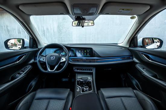 內飾方面,長安新能源CS55純電版搭載了10.25寸雙聯(lián)大屏設計,支持AI小安、在線娛樂、車載微信、手機無線充電、索尼音響、四路環(huán)視行車記錄儀以及遠程控制等功能。車門把手、貫穿式空調出風口等處都加入了藍色元素裝飾,用以展示其新能源車身份。在用料上,新車使用了能明顯提高檔次的軟質材料、皮質包覆和鋼琴漆飾板,為用戶帶來全新豪華智慧出行體驗。