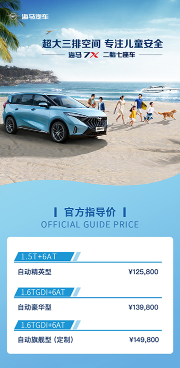 8月23日,海馬汽車旗下全新MPV海馬7X正式上市,共推出搭載1.5T/1.6TGDI兩款動(dòng)力的三款車型,售價(jià)區(qū)間12.58-14.98萬(wàn)元。