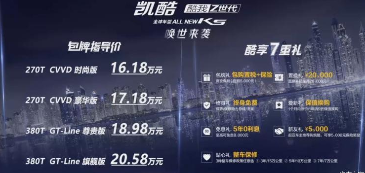 另?yè)?jù)了解,新車(chē)指導(dǎo)價(jià)格區(qū)間為16.18-20.58萬(wàn)元。起亞將這個(gè)價(jià)格稱(chēng)為包牌價(jià),是因?yàn)榘ㄙ?gòu)置稅和最高5000元保險(xiǎn)。根據(jù)官方公布的信息,截止9月6日,全新K5凱酷已經(jīng)收獲10615輛訂單。