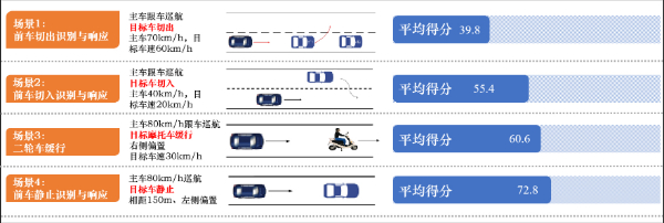 2022年,中汽中心首次新增輔助駕駛測(cè)評(píng)板塊,對(duì)智能網(wǎng)聯(lián)汽車(chē)的輔助駕駛系統(tǒng)進(jìn)行全面綜合評(píng)價(jià)。結(jié)果顯示,參與測(cè)試的22款熱銷(xiāo)車(chē)型,輔助駕駛綜合表現(xiàn)平均得分僅52.9,最高得分87.0,有些受測(cè)車(chē)型沒(méi)有配備輔助駕駛功能,則得分為0。